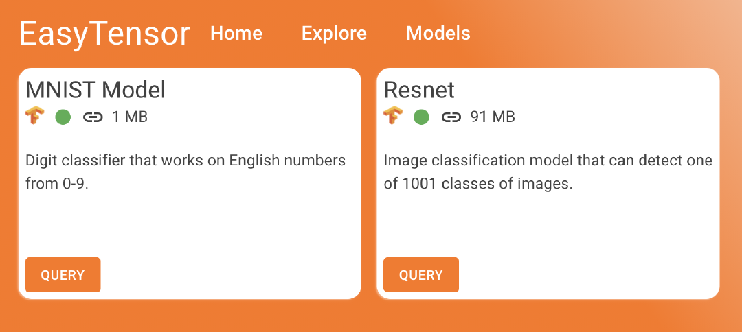 EasyTensor now has a whole new tab: Explore. It is the perfect place for new users to see what others have built and what public models they can use and upload.